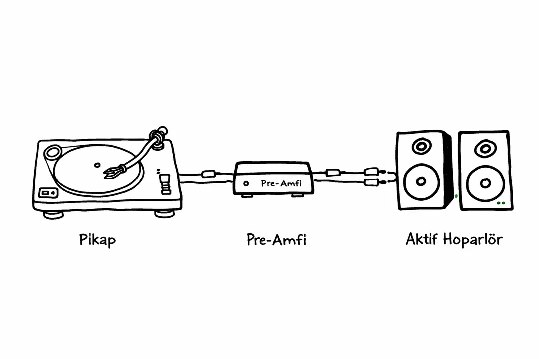 Pikap pre-amfisi, plaklardan doğru ses almanın temel şartıdır. Dahili veya harici olabilir; ancak pasif hoparlörler her zaman amplifikatör gerektirir. Doğru pre-amfi, plak deneyimini tamamen değiştirir.